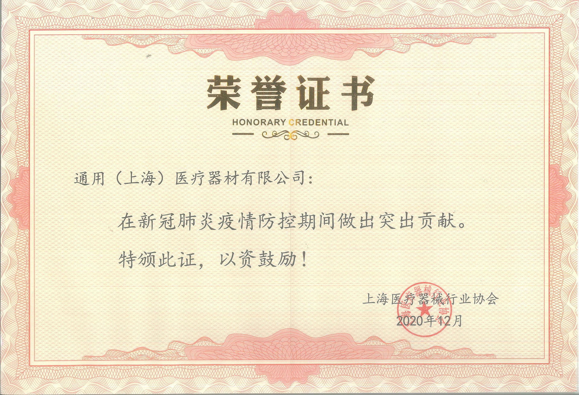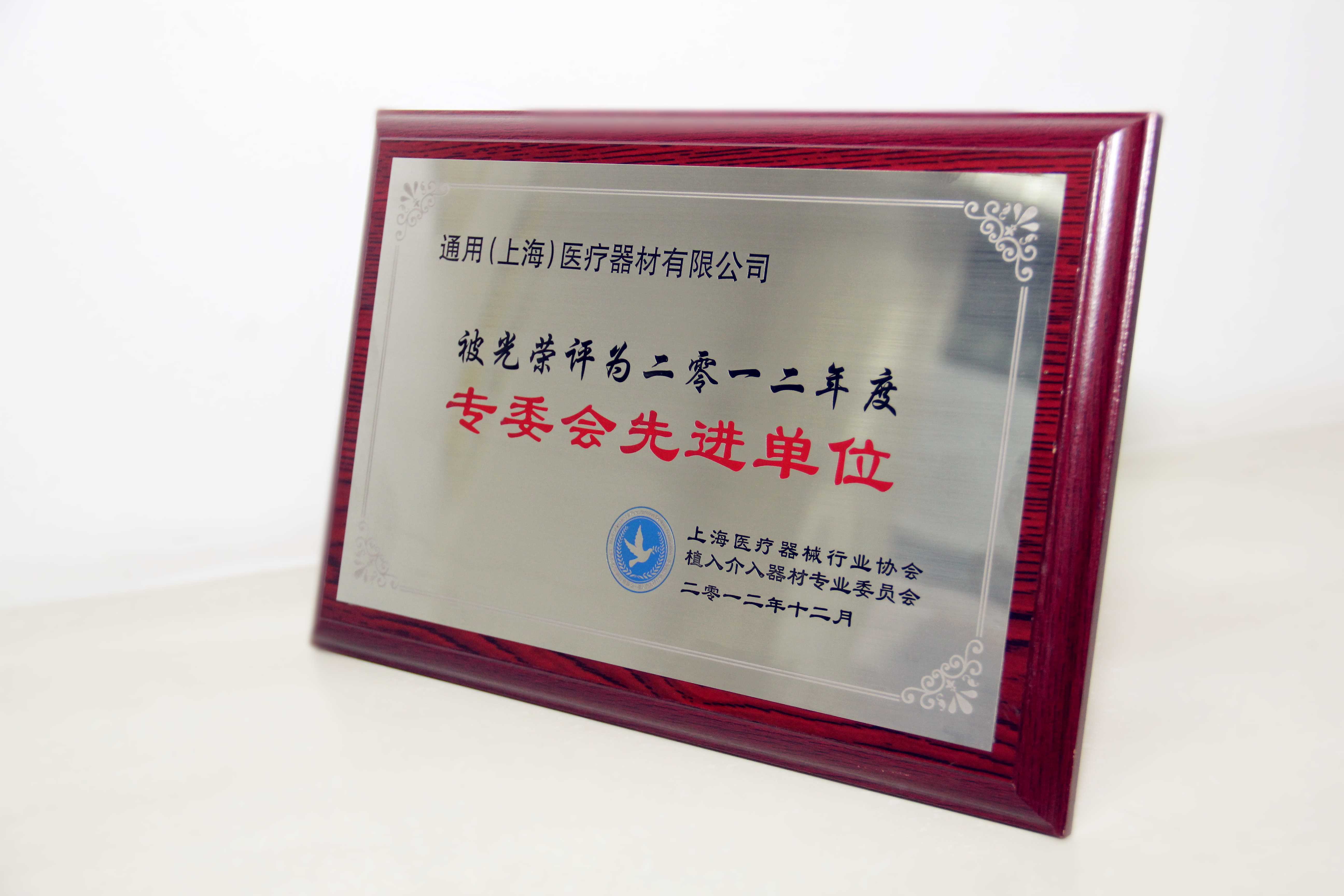 荣获上海医疗器械行业协会植入介入器材专业委员会先进单位